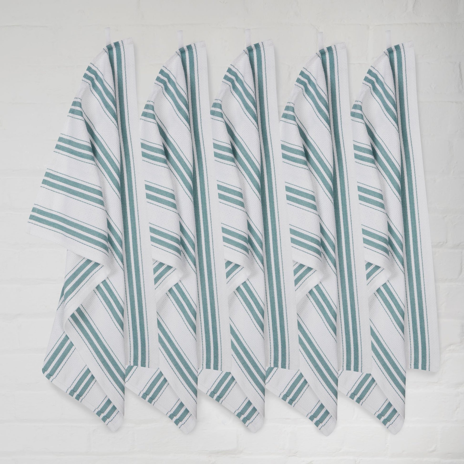 Set of 5 Basket Weave Striped Cotton Tea Towels in Five Colours