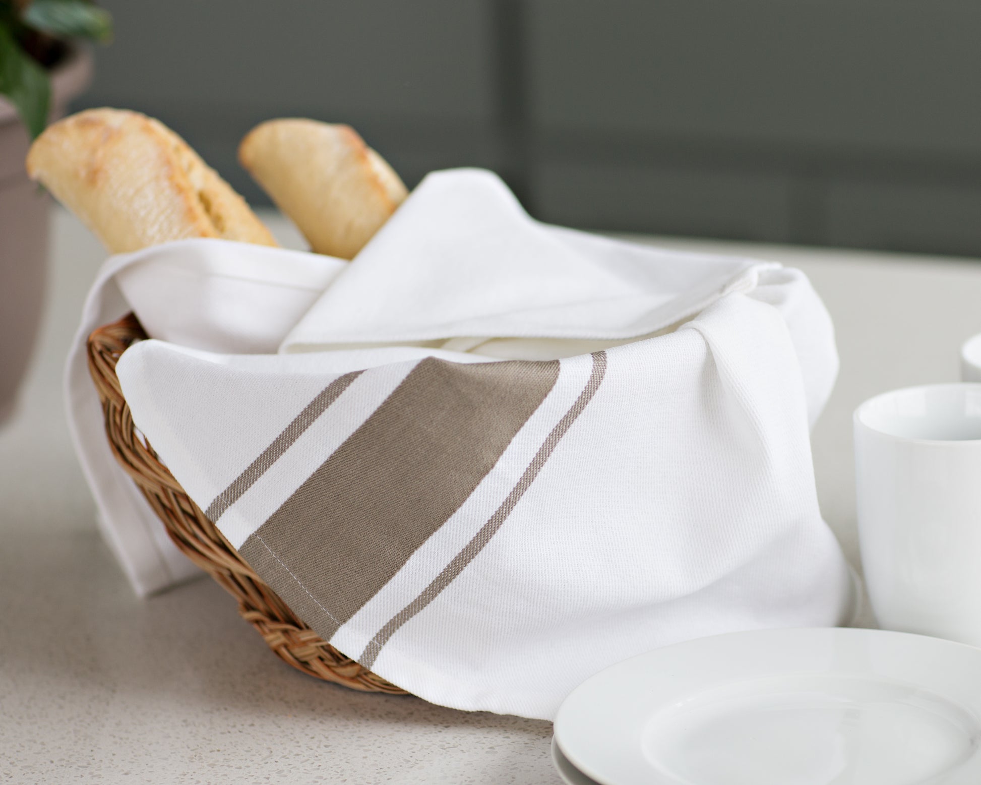 Large Set of 12 Striped Cotton Drill Tea Towels in Two Colours
