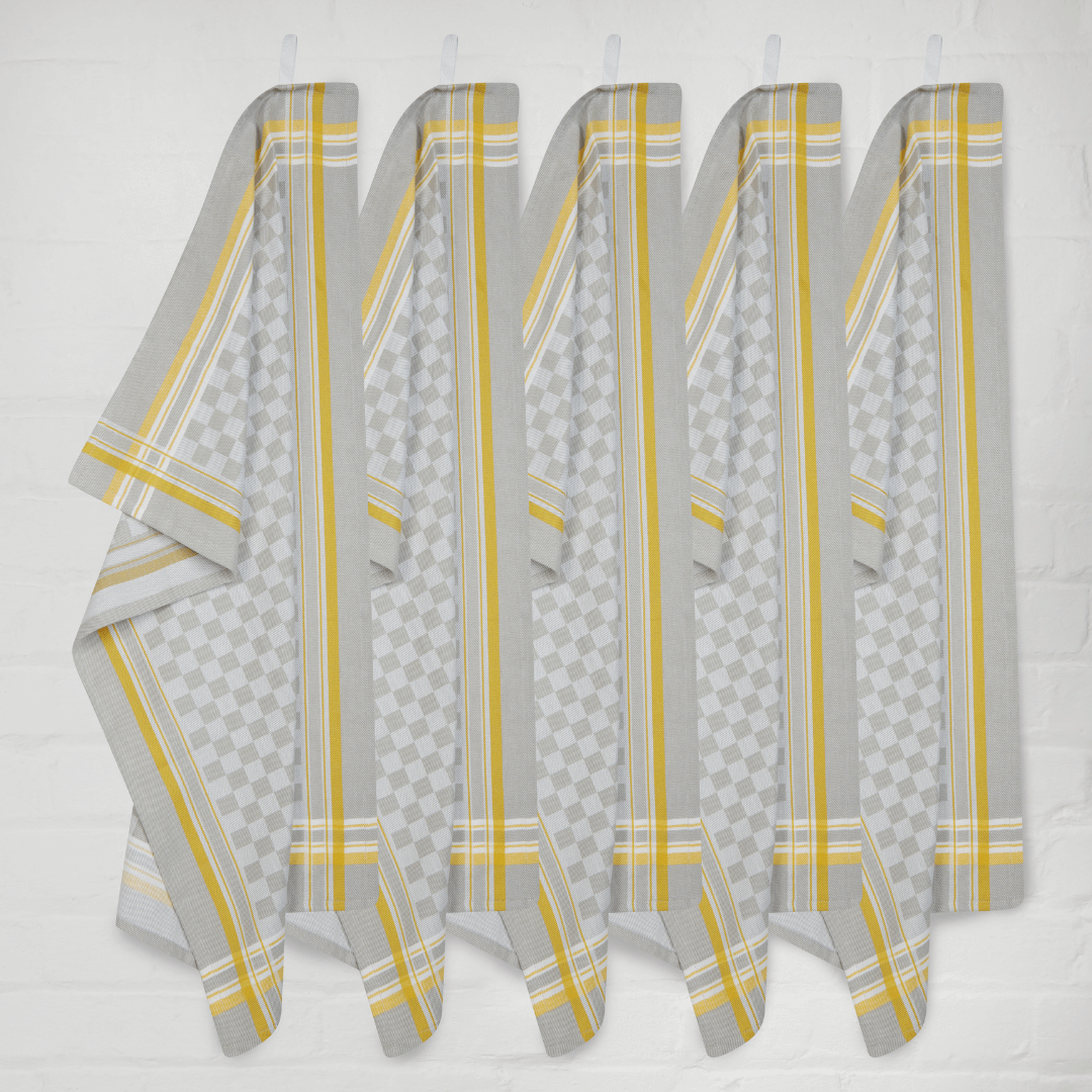 • SET OF FIVE VALUE PACK: The collection includes 5 woven tea towels finished nicely with all hemmed sides. Available in a variety of colours to coordinate with any kitchen.