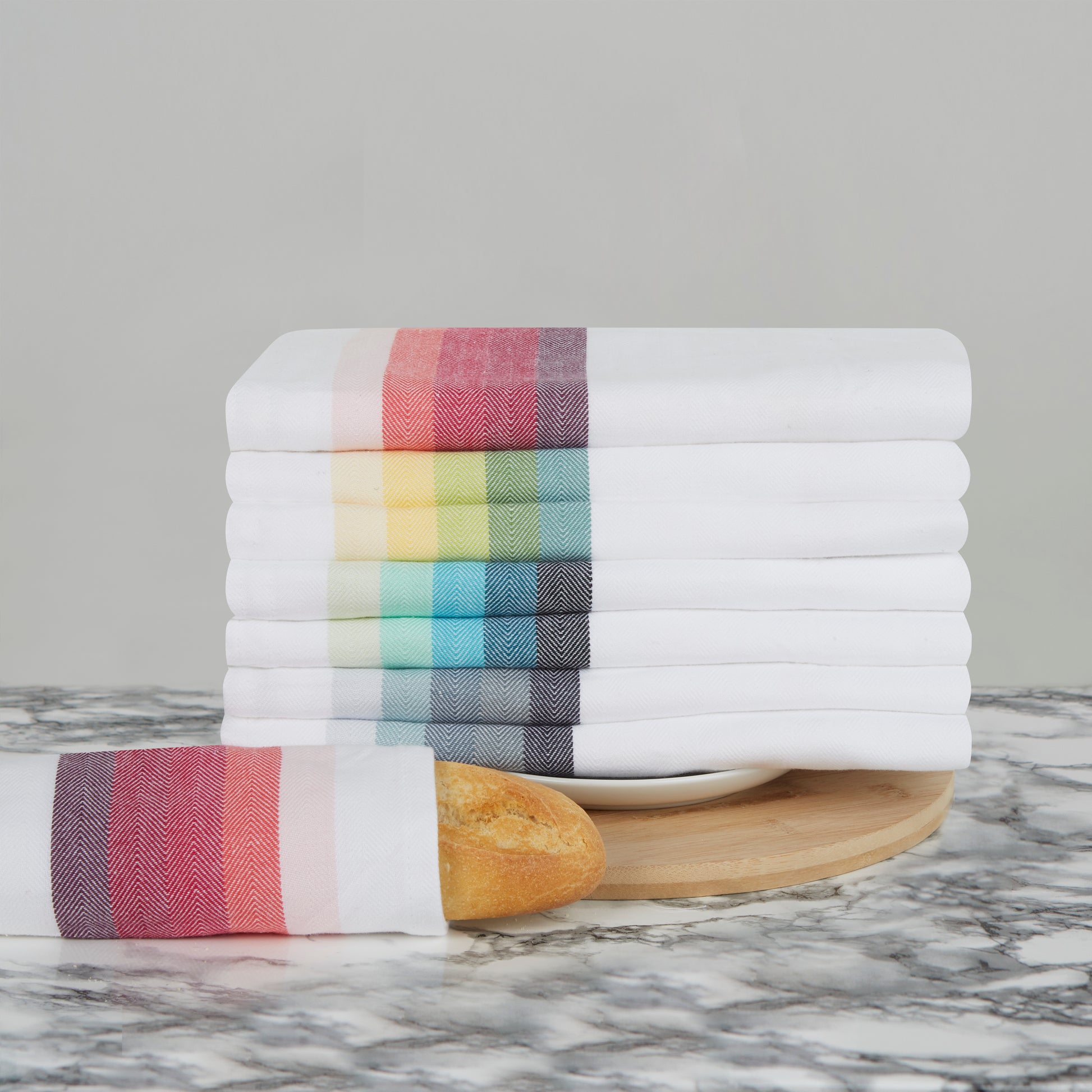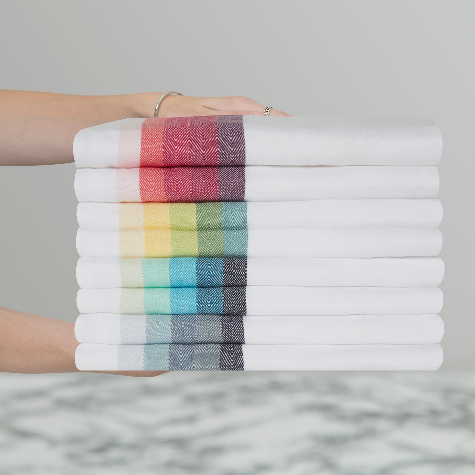 Large Set of 8 Multi-Coloured Herringbone Cotton Tea Towels in Mixed Colours