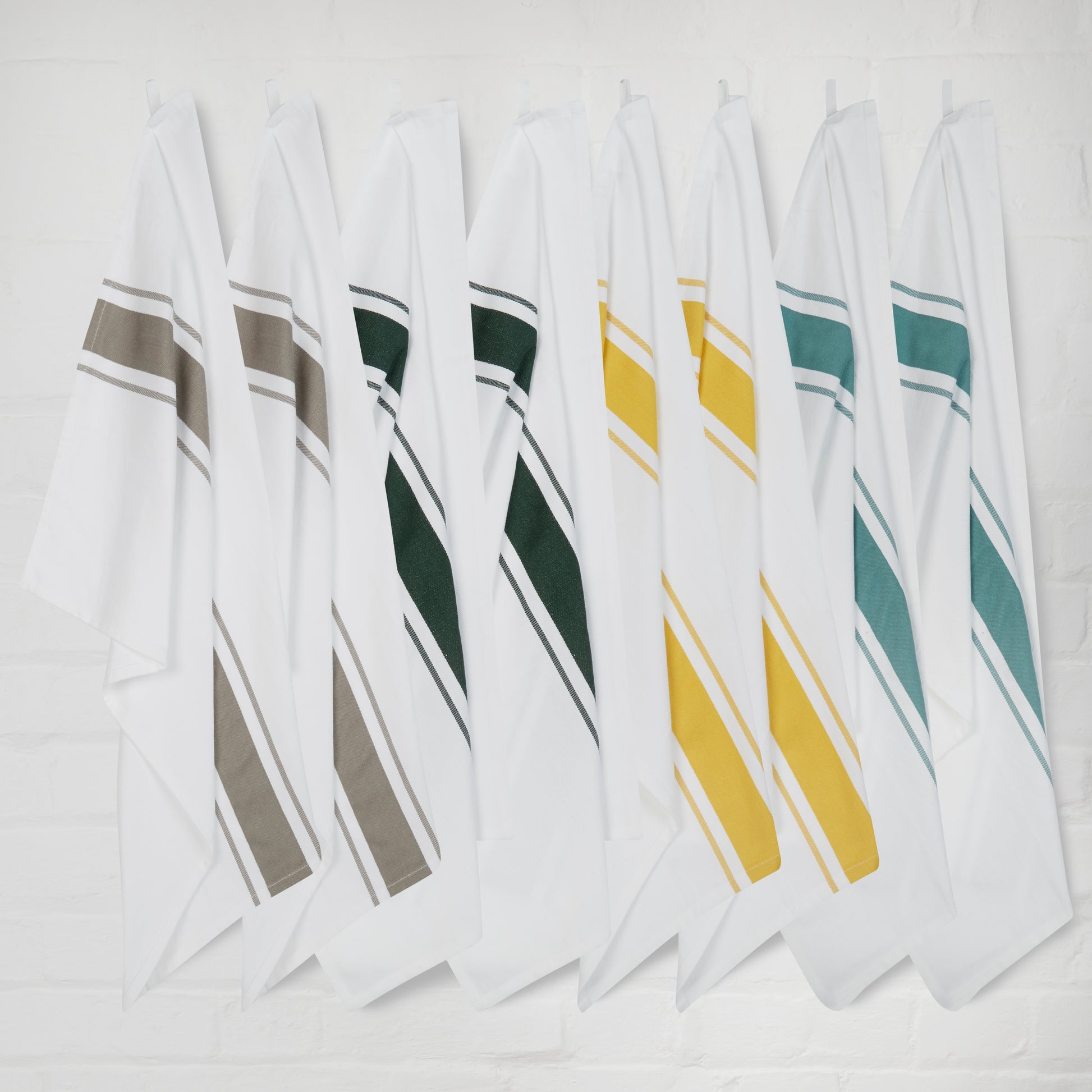Large Sets of 8 Striped Cotton Drill Tea Towels in Mixed Colours